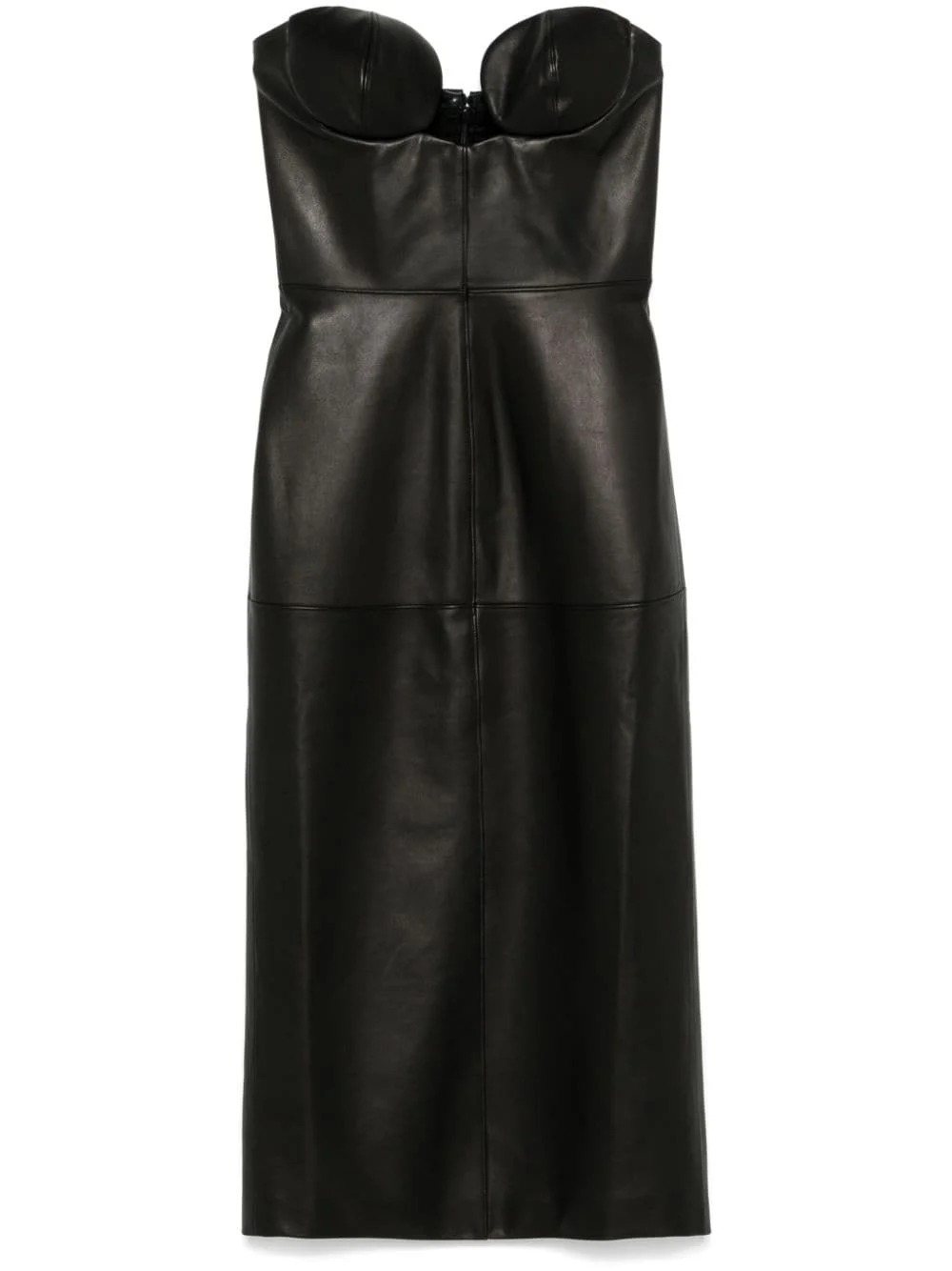 leather midi dress Highlights - Black - Calf leather - Concealed rear hook and zip fastening - Sweetheart neck - Strapless - Seam detailing - Central rear vent - Full lining - Straight hem Made in Italy Composition Calf Leather 100%, Viscose 68%, Polyamide 27%, Elastane 5% SIZE & FIT Model measurements Height 5 ft 9 in(1.75 m) Bust/Chest 31.88 in(81 cm) Hips 34.64 in(88 cm) Waist 24.01 in(61 cm) FittingInformation Designed for a close fit throughout Soft leather has a supple and smooth construction offering some flexibility