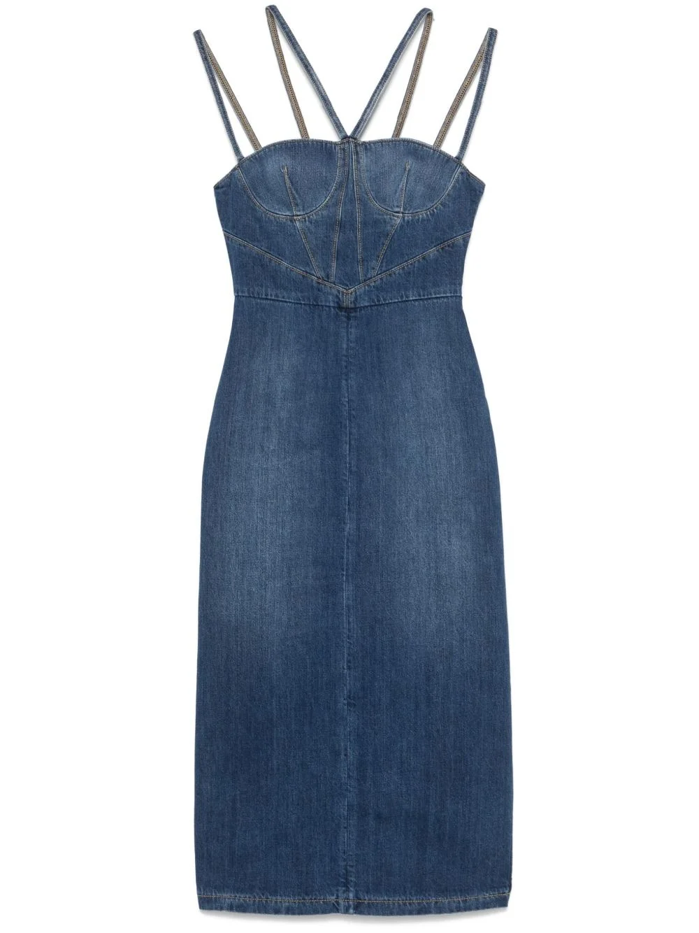 Gaelle midi dress Highlights - Indigo blue - Rear zip fastening - Rear slit - Sleeveless - Straight hem Made in Italy Composition Cotton 100% SIZE & FIT Model measurements Height 5 ft 11 in(1.8 m) Bust/Chest 31.49 in(80 cm) Hips 36.61 in(93 cm) Waist 24.4 in(62 cm) Measurement CHEST 27.55 in(70 cm) HIPS 33.07 in(84 cm) LENGTH 43.7 in(111 cm) WAIST 24.4 in(62 cm) FittingInformation Designed for a close fit throughout The vented hem offers movement at the rear Sturdy and hard-wearing, this denim piece offers no stretch