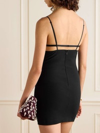 EDITORS'NOTES Bold, sensual and feminine, Nensi Dojaka's collections are designed to make you feel empowered. This mini dress is cut from crepe for a close fit and has a scalloped tulle bustier outlined with red trims that replicate the pattern of a heartbeat. Style yours with tonal pumps and a bold lip. SIZE & FIT Model measurements: - Fits true to size, take your normal size - Designed for a close fit - Fully adjustable shoulder straps - Mid-weight, stretchy fabric - Model is 180cm/ 5'11" and is wearing a size Small - Bust: 81cm/ 32" - Waist: 63cm/ 25" - Hip: 91cm/ 36" DETAILS & CARE - Black and red crepe, beige tulle - Concealed hook and zip fastening at back