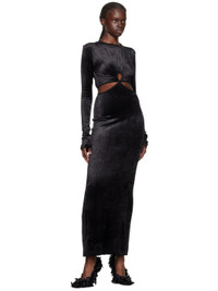 Viscose-blend velour dress. · Rib knit crewneck · Keyhole cutout and gathering at front · Cutouts at waist · Vented side seam Supplier color: Black 83% viscose, 17% polyester. Made in Italy 232334F055006