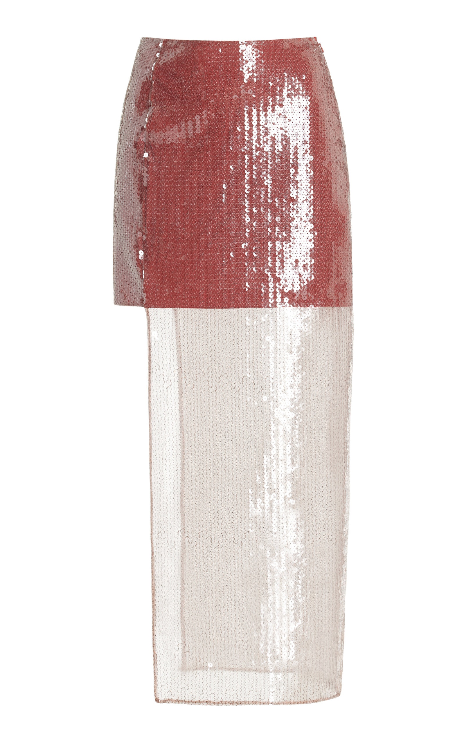 Albanian-born Nensi Dojaka established her namesake label shortly after graduating from Central Saint Martins in 2019. With a distinctive brand aesthetic, you'll find quality fabrics, feminine cutouts, and lingerie-inspired silhouettes. This eye-catching midi skirt is crafted from mesh embroidered with shimmering sequins. The silhouette is asymmetric, layered, and open at the side. PRODUCT DETAILS - Fall '24 - Concealed zip fastening along back - Composition: 100% Polyamide; Sequins: 100% Polyester - Dry clean - Made in Italy SIZE & FIT - Designed for a slim fit