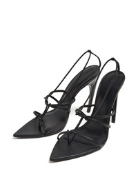 pointed-toe leather sandals Highlights - Black - Calf leather - High stiletto heel - Branded footbed - Caged design - Open toe - Pointed toe - Logo sole Made in Italy Composition Sole: Calf Leather 100% Lining: Calf Leather 100% Outer: Calf Leather 100%