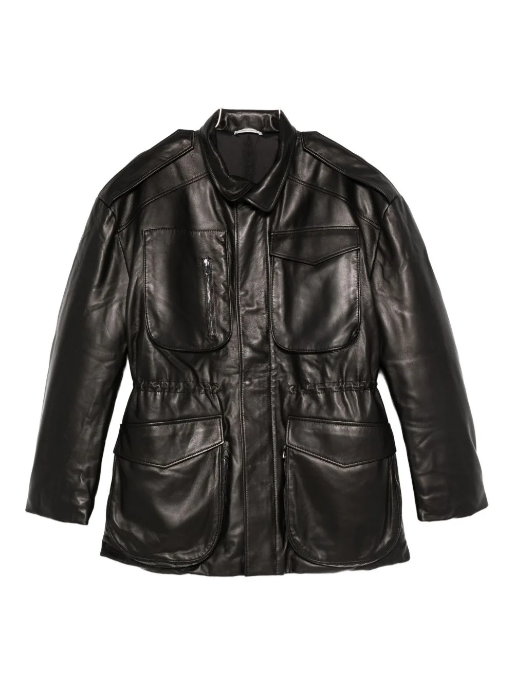 leather puffer jacket Highlights - Black - Stand collar - Press-stud placket - Epaulets Made in Italy Composition Outer: Nappa Leather 100% Lining: Viscose 68%, Polyamide 27%, Elastane 5% Washing instructions Dry Clean Only