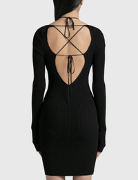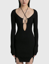 - Nensi Dojaka - Long Sleeve Ribbed Dress - Ribbed construction - Scoop neckline - Cross strap details - Rear tie closure - Mini length - Color: Black - Material: 82% Viscose, 17% Polyester, 1% Polyamide - See more Dresses and Clothing SIZING - Model wears size XS - Model measures: Height 170cm, Chest 29”/75cm, Waist 22”/57cm, Hip 33”/86cm