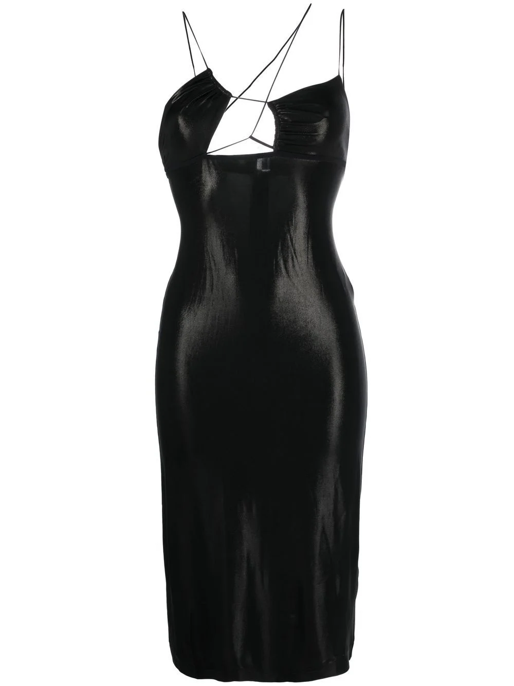 glossy asymmetric-neck dress black stretch-design glossy finish asymmetric neck adjustable spaghetti straps concealed rear zip fastening sleeveless straight hem mid-length Made in Italy Composition Viscose 95%, Elastane 5% SIZE & FIT Model measurements Height 6 ft 2 in(1.87 m) Bust/Chest 36.22 in(92 cm) Hips 37 in(94 cm) Waist 27.95 in(71 cm) Measurement HIPS 30.7 in(78 cm) LENGTH 42.91 in(109 cm) WAIST 22.83 in(58 cm) FittingInformation This piece fits true to size. We recommend you get your regular size Designed for a close fit at the bust, waist and hips Made with a mid-weight stretch fabric Washing instructions Dry Clean Only