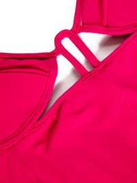 Mika swimsuit Highlights - Fuchsia pink - Stretch-design - Rear tie fastening - V-neck - Cut-out detailing - Double thin shoulder straps - Pads - Low back - Seam detailing - Be mindful to try on swimwear over your own garments. Imported Composition Microfibre 75%, Elastane 25%
