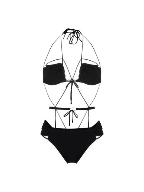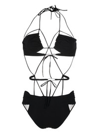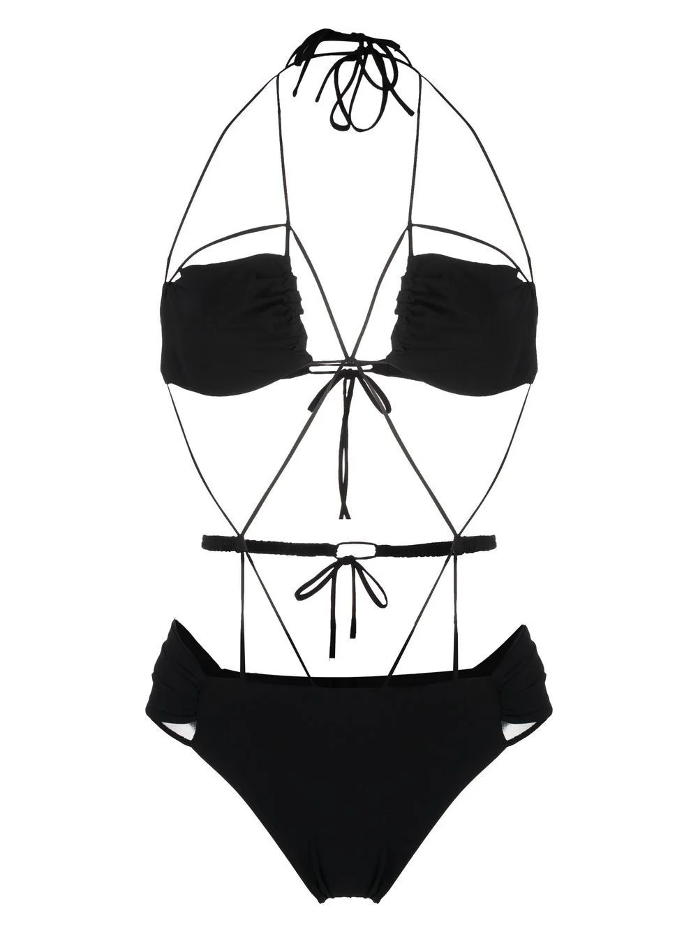 multi-strap design swimsuit black stretch-design multi-way strap design halterneck tie fastening full cup elasticated waistband rear tie fastening gathered detailing full coverage Be mindful to try on swimwear over your own garments. Made in Italy Composition Lining: Polyester 73%, Elastane 27% Outer: Polyester 72%, Elastane 28% Washing instructions Hand Wash
