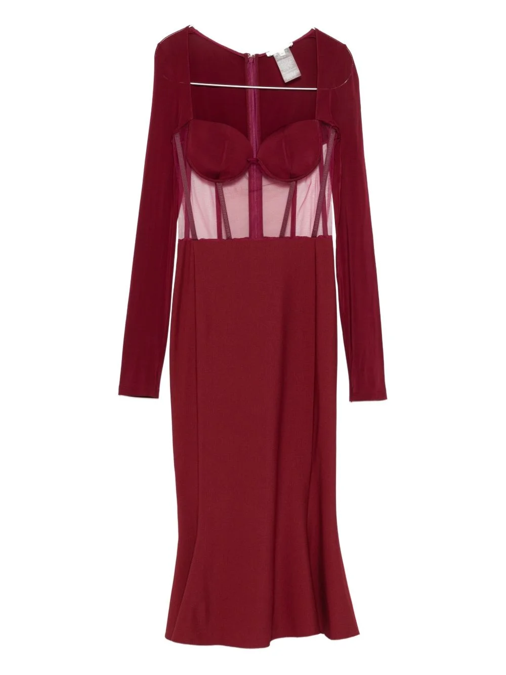 mesh-panel midi dress Highlights - Burgundy red - Mesh panelling - Long sleeves - Rear zip fastening - Corset style - Flared hem Made in Italy Composition Viscose 83%, Polyamide 12%, Elastane 5% Washing instructions Read Manufacturer Guidelines