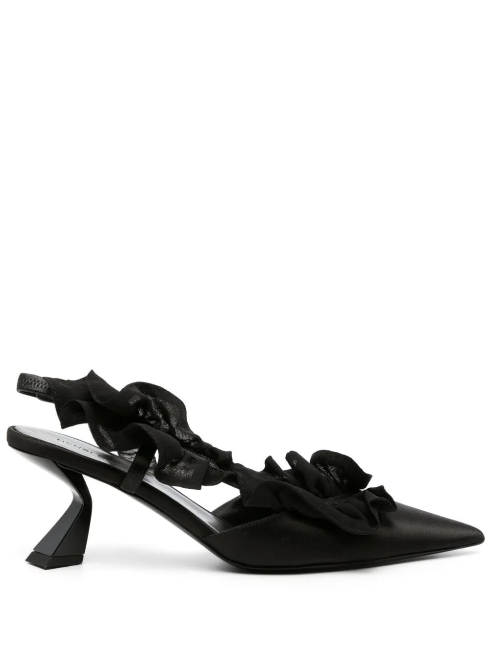 ruffle-detailed satin slingbacks Highlights - Black - Satin - Leather trim - Pointed toe - Ruffled detailing - Branded leather insole - Slingback strap - Low sculpted heel Made in Italy Composition Outer: Satin 100% Sole: Calf Leather 100% Lining: Calf Leather 100% SIZE & FIT Measurement HEEL 2.95 in(7.5 cm)