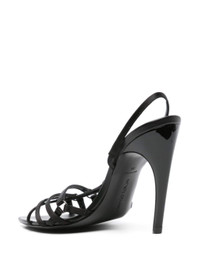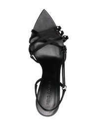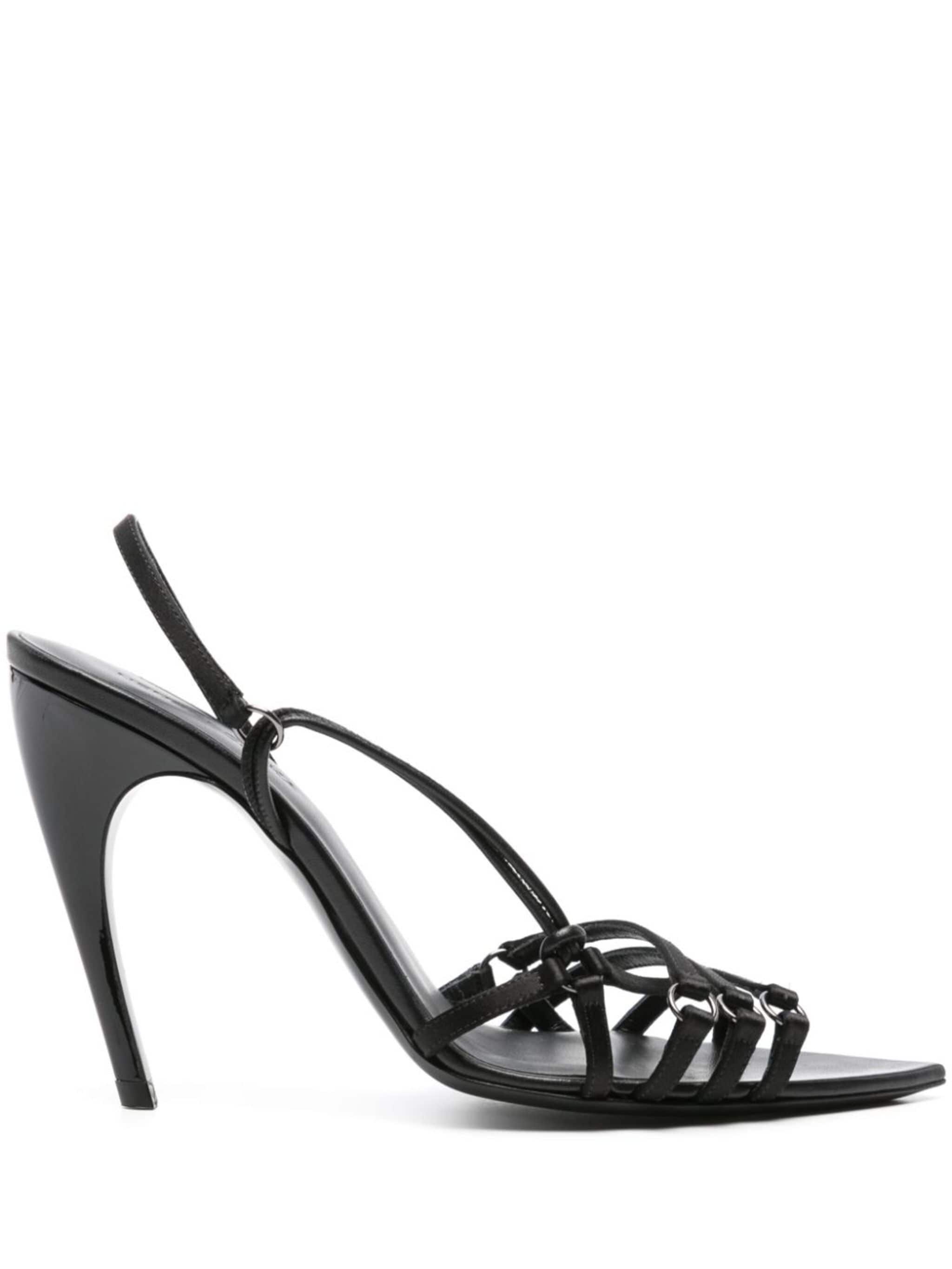 black satin finish pointed toe crossover straps at the toe adjustable toe strap branded leather footbed 100mm high sculpted heel leather outsole slip-on style This piece comes complete with a protective dust bag. Size & Fit Model Measurements: Bust: 0cm Height: 0cm Hips: 0cm Waist: 0cm HEEL: 10cm Fabric and Care Designer Style ID: ND24SSPCW42030A Designer Colour: BLACK Composition: Sole: Calf leather 100%; Outer: Fabric 100%; Lining: Calf leather 100%Made in Italy