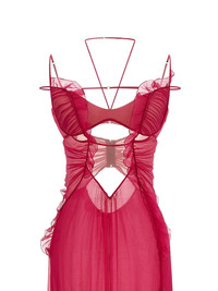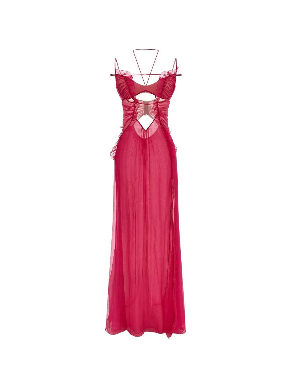 ruffled cutout gown Highlights - Fuchsia - Ruffle detail - Cutout detail - Adjustable straps - Back zip fastening - Side slit Made in Italy Composition Silk 100% Washing instructions Read Manufacturer Guidelines