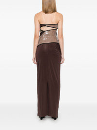sequin-embellished maxi dress Highlights - Chocolate brown - Stretch-design - Panelled design - Sequin embellishment - Concealed side hook and zip fastening - Sweetheart neck - Sleeveless - Ruched detailing - Draped detailing - Rear slit - Unlined - Straight hem - Long length Made in Italy Composition Viscose 92%, Elastane 8% SIZE & FIT Model measurements Height 5 ft 9 in(1.75 m) Bust/Chest 31.88 in(81 cm) Hips 34.64 in(88 cm) Waist 24.01 in(61 cm) FittingInformation Designed for a close fit throughout Made from a lightweight stretch fabric, this piece offers elasticity and flexibility when worn