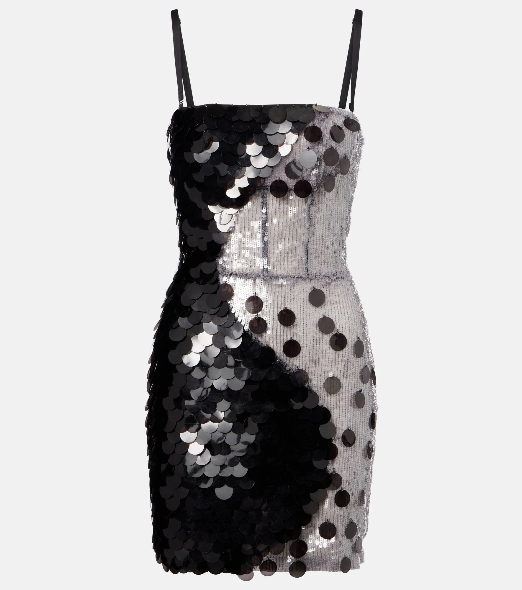 Alluring cutouts and intricate networks of straps have become synonymous with Nensi Dojaka's designs. Complete with all-over black and silver sequins, this minidress can be worn with straps or without. Product Details - Material: 100% polyamide - Care instructions: specialist clean - Made in India - Designer color name: Black / Grey - Item color: black, gray - Closure: concealed zipper - Material II: 92% polyamide, 8% elastane - Item number: P01034254 Size & Fit - Fits small to size - we recommend trying one size larger - Internal boned corset for support - Semi-sheer - Fitted - Non-stretchy fabric - The model seen in the picture is 178cm-5'10" and wearing a size S