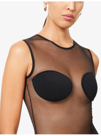 PRODUCT DETAILS - Nensi Dojaka mesh bodysuit - 84% polyamide, 16% elastane - Snap fastening - Round neck, sleeveless, padded cups, all-over sheer mash, binding at trims - Specialist dry clean only - True to size - Model is 5ft 10in/1.78m and wears a size small - Lightweight, slight stretch Ref: R04518667