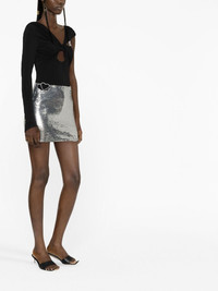 heart cut-out sequinned miniskirt Nensi Dojaka elevates the classic miniskirt with a romantic flair. Drenched in shimmering silver sequins, this thigh-skimming silhouette features signature heart-shaped cut-outs to the sides. Highlights - Silver - Sequin embellishment - Heart motif - Cut-out detailing - High waist - Rear zip fastening - Thigh-length Made in Italy Composition Polyester 60%, Polyamide 30%, Spandex/Elastane 10% SIZE & FIT Model measurements Height 5 ft 10 in(1.79 m) Bust/Chest 31.1 in(79 cm) Hips 35.03 in(89 cm) Waist 24.01 in(61 cm) Measurement HIPS 30.7 in(78 cm) LENGTH 15.74 in(40 cm) WAIST 23.62 in(60 cm) FittingInformation This mini-length skirt is intended to be worn just below the waist Slightly short in length; consider your own measurements Made from a midweight stretch fabric, this piece offers elasticity and flexibility when worn This piece fits true to size – take your usual size