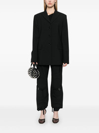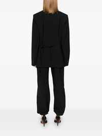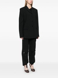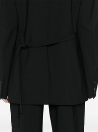 single-breasted blazer Highlights - Black - Front button fastening - Peak lapels - Chest welt pocket - Shoulder pads - Long sleeves - Buttoned cuffs - Two side flap pockets - American rear vent - Adjustable strap to the rear - Full lining - Straight hem Made in Italy Composition Polyester 53%, Virgin Wool 43%, Elastane 4% SIZE & FIT Model measurements Height 5 ft 9 in(1.75 m) Bust/Chest 31.88 in(81 cm) Hips 34.64 in(88 cm) Waist 24.01 in(61 cm) FittingInformation Designed to be unstructured, offering a loose fit throughout The internal shoulder pads offer a structured shape Made from a midweight fabric