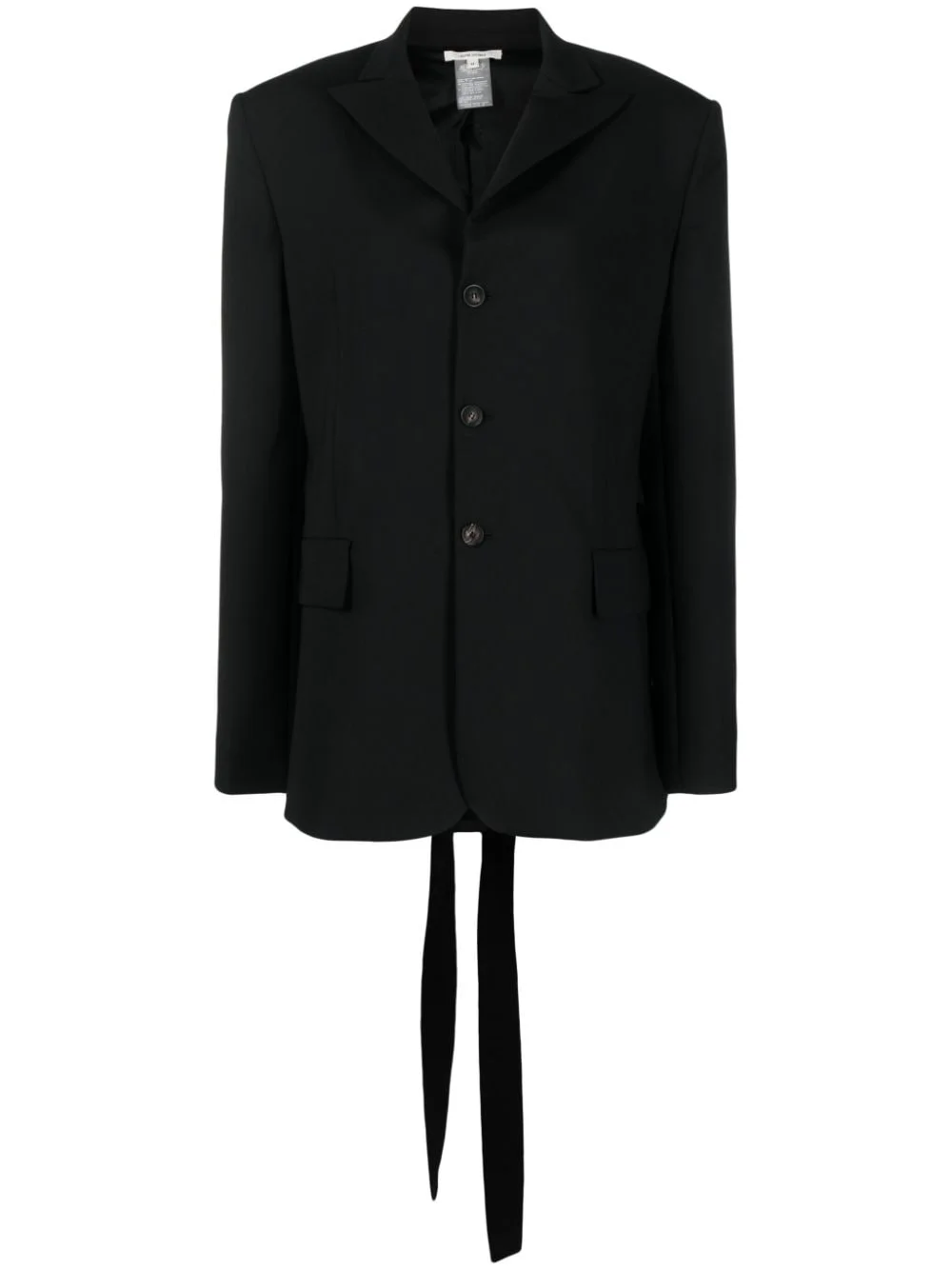 strap-detail single-breasted blazer Highlights - Black - Stretch-wool - Draped strap detailing - Notched collar - Front button fastening - Long sleeves - Two front flap pockets - Straight hem Imported Composition Outer: Wool 98%, Elastane 2% Lining: Viscose 100% SIZE & FIT Model measurements Height 5 ft 10 in(1.78 m) Bust/Chest 33.07 in(84 cm) Hips 36.61 in(93 cm) Waist 24.8 in(63 cm) FittingInformation Designed to be unstructured, offering a loose fit throughout The internal shoulder pads offer a structured shape Made from a midweight fabric This piece fits true to size – take your usual size Washing instructions Dry Clean Only
