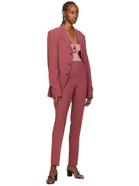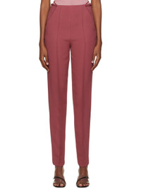 Viscose crepe trousers. Integrated elasticized belt with cinch fastening at waistband. · Belt loops · Three-pocket styling · Pinched seams at front · Zip closure at outseam · Central crease at back · Partial cupro satin lining Supplier color: Hawthorn rose