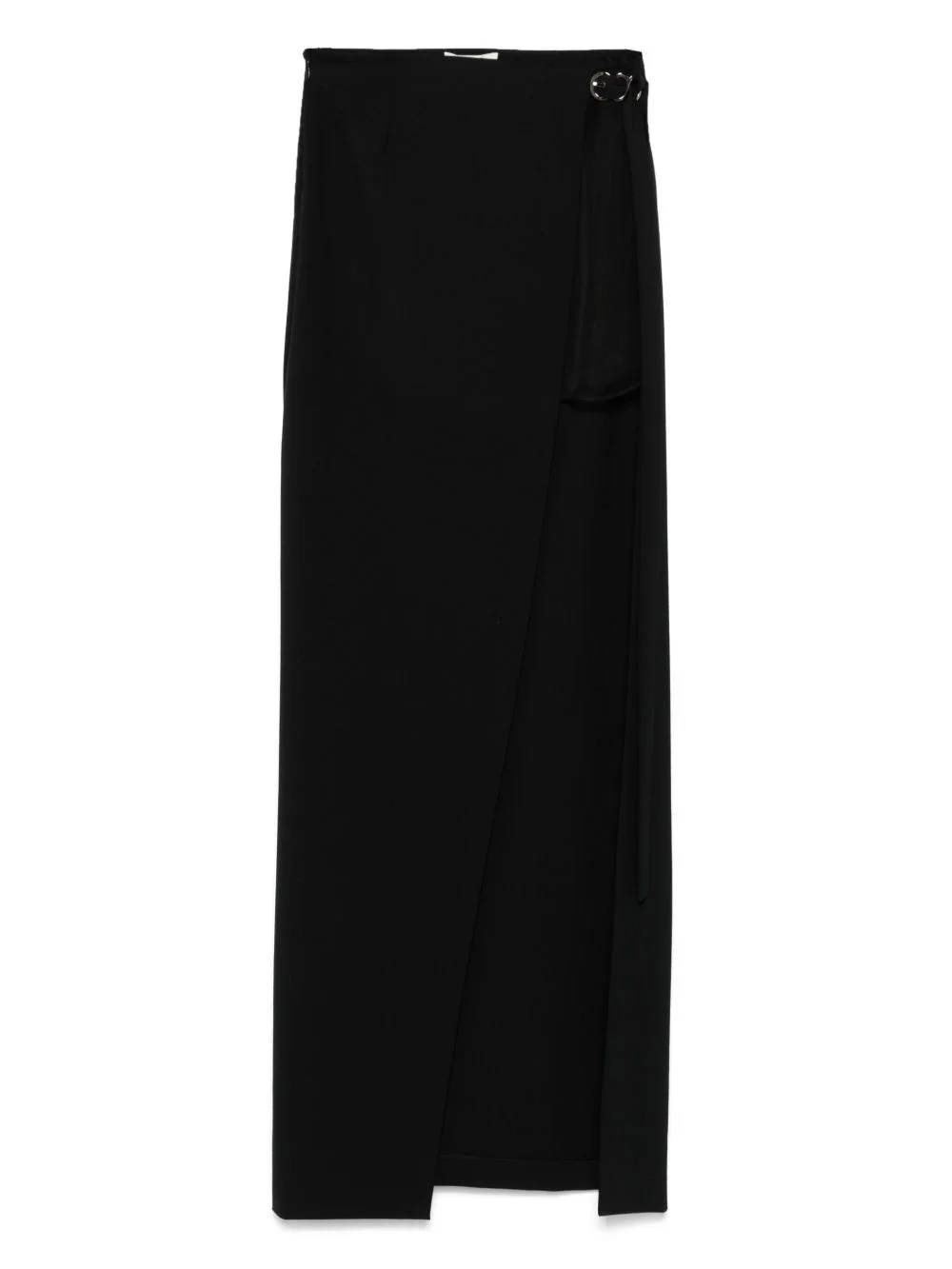 asymmetric skirt Highlights - Black - Side zip fastening - Side slit - Long length Made in Italy Composition Lining: Polyester 100% Outer: Polyester 53%, Virgin Wool 43%, Elastane 4%
