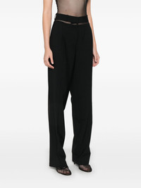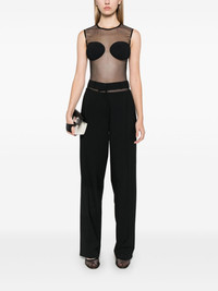 wide-leg tailored trousers Highlights - Black - Tailored cut - Concealed front button, hook and zip fastening - Belt loops - Mesh panelling - Pleat detailing - Pressed crease - Two side inset pockets - Wide leg Made in Italy Composition Polyamide 100%, Polyester 53%, Virgin Wool 43%, Elastane 4% SIZE & FIT Model measurements Height 5 ft 9 in(1.75 m) Bust/Chest 31.88 in(81 cm) Hips 34.64 in(88 cm) Waist 24.01 in(61 cm) FittingInformation Designed for a relaxed tapered cut, these trousers allow for a close fit at the waist and offer a loose fit at the thighs, with a closer fit toward the ankles Made from a lightweight stretch fabric, this piece offers elasticity and flexibility when worn