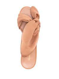 55mm Diana mules Highlights - Rust pink - Calf leather - Satin weave - Knot detailing - Slip-on style - Branded leather insole - Open toe - Stiletto heel - 55mm stiletto heel Made in Italy Composition Lining: Calf Leather 100% Sole: Calf Leather 100% Outer: Satin 100% SIZE & FIT Measurement HEEL 2.55 in(6.5 cm)