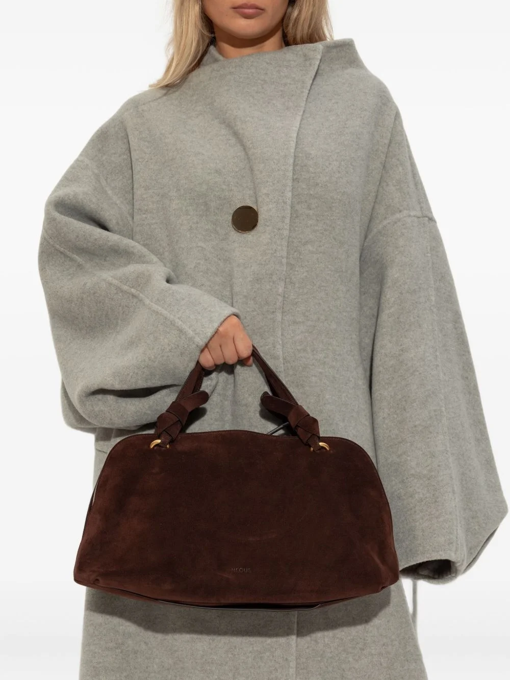 Aries knotted-handle tote bag Highlights - Dark chocolate - Suede - Top handle - Knotted detail - Gold-tone hardware - Zip fastening Made in Italy Composition Outer: Calf Suede 100%, Leather 100% SIZE & FIT Measurement DEPTH 8.66 in(22 cm) HEIGHT 8.66 in(22 cm) WIDTH 17.32 in(44 cm)