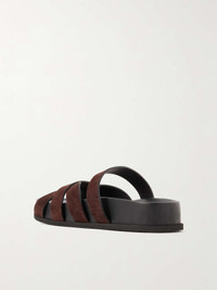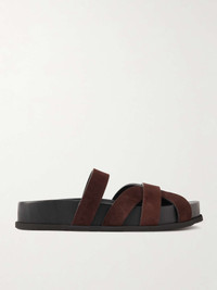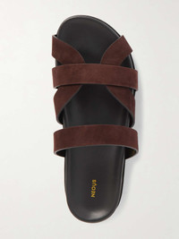 EDITORS'NOTES NEOUS's 'Ibor' slides prove the brand knows how to make even the most casual of shoes look and feel luxurious. Made in Italy, they're designed with curved suede straps that overlap at the toes and rest on molded rubber footbeds for comfort. Wear yours with floaty sundresses or cropped jeans. SIZE & FIT - Fits true to size, take your normal size - Italian sizing DETAILS & CARE - Brown suede (Calf) - Slip on - Designer color: Dark Chocolate