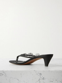 Kalliope Lace And Leather-trimmed Crepe De Chine Sandals
