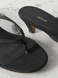 NEOUS' minimal yet feminine shoes are handmade in Italy by skilled craftspeople using time-honored techniques. These 'Kalliope' sandals are made from crepe de chine and leather with delicate lace trims along the slender V-shaped straps. They have rounded toes and rest on sculptural 40mm cone heels.