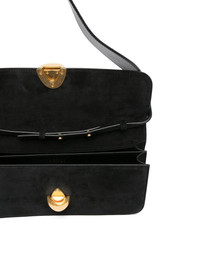 clasp-fastening suede shoulder bag Highlights - Black - Suede - Single shoulder strap - Flap closure - Clasp fastening - Rectangular shape Made in Italy Composition Outer: Calf Suede 100% SIZE & FIT Model measurements Height 5 ft 11 in(1.8 m) Bust/Chest 31.49 in(80 cm) Hips 36.61 in(93 cm) Waist 24.4 in(62 cm) Measurement DEPTH 2.75 in(7 cm) HEIGHT 5.51 in(14 cm) WIDTH 11.41 in(29 cm)
