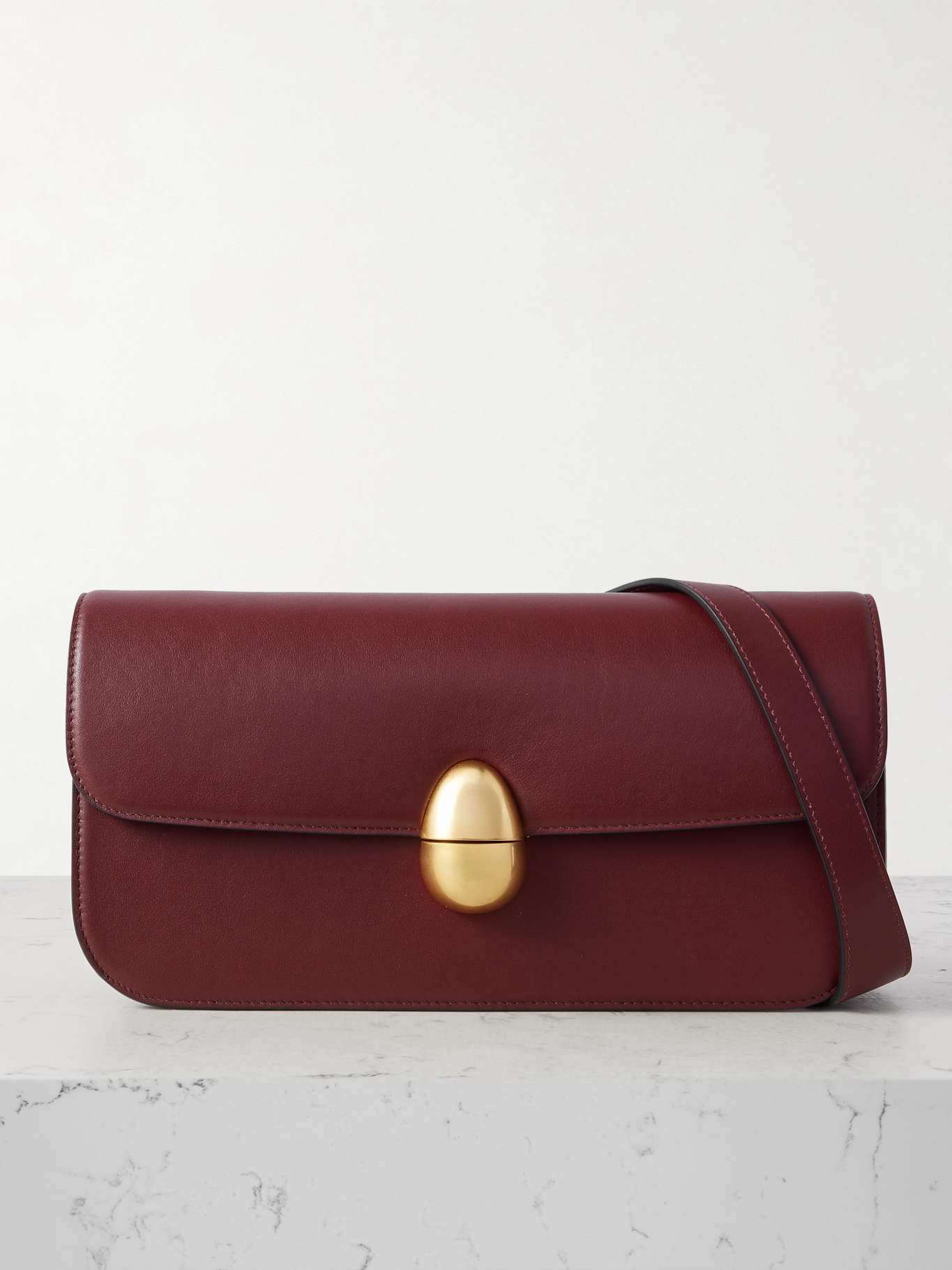 EDITORS'NOTES NEOUS updates its signature 'Phoenix' bag in an elongated, retro-inspired 'Baguette'-style silhouette. Handmade in Italy from supple leather, it has signature egg-shaped hardware and a detachable curved shoulder strap. The dual-compartment interior is equipped with plenty of space for your phone, cardholder, lip-gloss and mints. SIZE & FIT This item’s measurements are: - Handle Drop: 24cm / 9.4in - Depth: 7cm / 2.8in - Length: 13cm / 5.1in - Height: 14cm / 5.5in - Width: 28cm / 11in DETAILS & CARE - Burgundy leather (Calf) - Detachable adjustable shoulder strap - Two internal compartments - Fully lined - Magnetic-fastening front flap - Weighs approximately 2.4lbs/ 1.1kgs - Comes with a dust bag