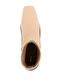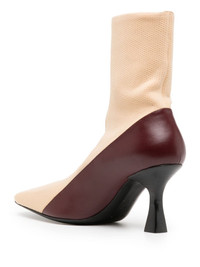 Ruch 80mm two-tone boots Highlights - Burgundy/light beige - Linen/flax/calf leather - Two-tone design - Panelled design - Square toe - Slip-on style - Ankle-length - Mid sculpted heel Made in Italy Composition Outer: Fabric 100% Lining: Nappa Leather 100% Sole: Nappa Leather 100% SIZE & FIT Measurement CIRCUMFERENCE 3.14 in(8 cm) HEIGHT 6.69 in(17 cm)