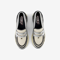 Heads up: these run a bit small — go half a size up for the best fit. New Balance explores the juxtaposition of sneakers and more formal attire with the latest iteration of the versatile 1906, reimagining them in the shape of a classic penny loafer. Built with an open-holed mesh upper, the New Balance 1906 Loafer features curvilinear synthetic overlays, the 860v2 sole unit, and segmented ABZORB SBS pods at the heel, providing enhanced comfort and cushioning. This design doesn’t just blur the lines between high-performance heritage and cutting-edge fashion; it erases the distinction altogether. - New Balance 1906L - Open mesh upper - Synthetic overlays - Slip-on design - ABZORB SBS pods at heel - N-ergy outsole Article no: U1906LOB Gender: Unisex Color: SILVER METALLIC