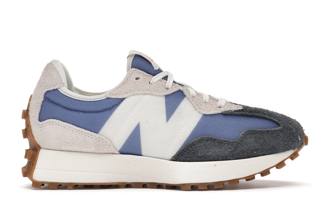 This women's version of the New Balance 327 Blue Grey W has a Varsity Orange and Magnetic Blue color combination. The shoe has a mesh sole and suede overlays in two-tone with a 320-inspired N logo on the mid-foot, plush suede overlays, and a thin EVA foam midsole. Its toe cap, vamp, and mudguard feature hairy dark blue accents giving the sneaker a contrast. Other features include the studded tread gum outsole and heel wrap. A varsity orange on the panels, the NB logo on its padded tongue, and the "new balance" text on the heel counter complete the shoe’s appearance. The New Balance 327 Blue Grey W was released on 10th July 2020 and retailed at the price of $100. - Style WS327COC - Colorway Magnetic Blue/Varsity Orange - Retail Price 100 - Release Date 2020-07-10 - Featured false