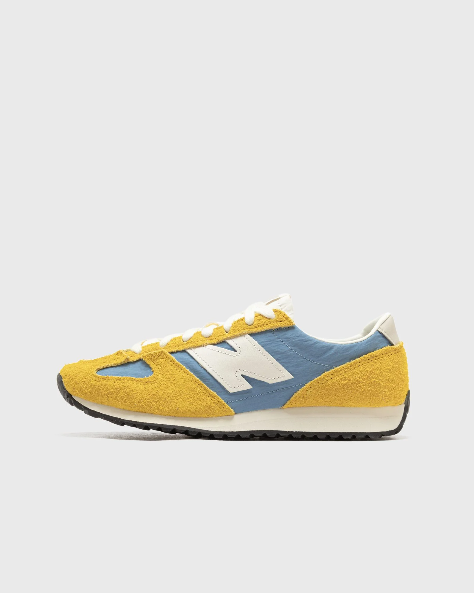 The New Balance 471 reinterprets visual elements from the running tradition of the 70s into a modern style for today. The slim, flat profile, wedge-shaped EVA midsole, and herringbone outsole provide a familiar starting point, allowing the high-quality materials to come into their own. Breathable mesh upper and suede overlays create a relaxed look, while the classic ‘fang’ design on the toe cap is a unique visual feature of New Balance that makes the 471 stand out. - EVA midsole - Leather accents on the collar and heel - Outsole with classic herringbone pattern - Breathable mesh underlays - Suede overlays Article number: U471VBC Gender: women Color: STILL WATER Material: 30% Rubber, 30% Leather, 40% Synthetic/Textile