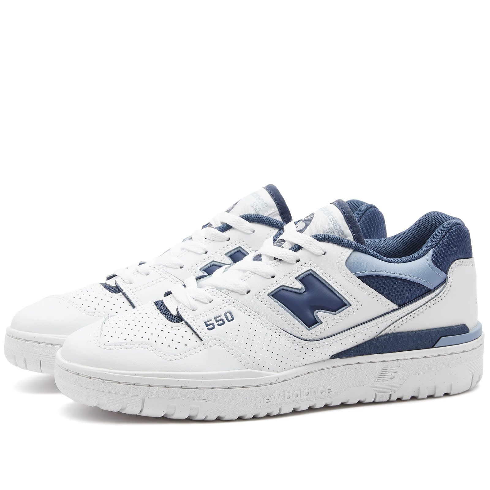 The New Balance BBW550BG is a refined interpretation of late '80s athletic designs. Its low top, streamlined silhouette is crafted from durable white leather, accented by hints of navy, to create a different kind of neutral number. So whether for sport or style, this pair of 550s is the classic choice. - Leather Uppers - Rubber Outsole