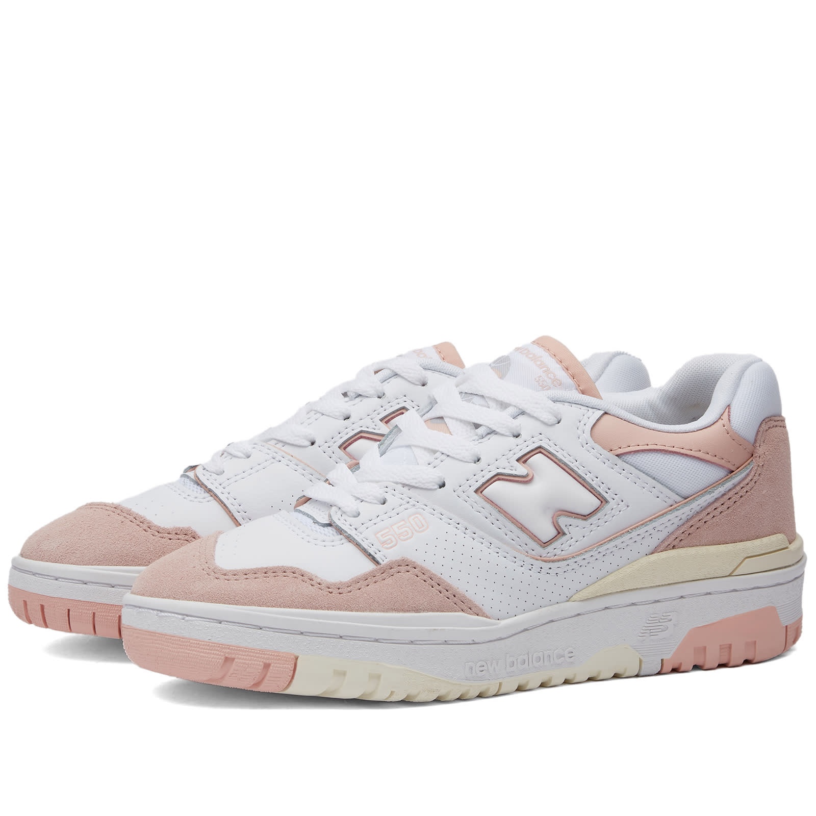 First debuted in 1989, New Balance’s 550 sneaker has quickly become a global phenomenon making its mark in the streetwear scene. Retaining the same retro low-top profile as the original, the streamlined design features crisp white leather uppers, complemented with light pink suede overlays. Underfoot, a tri-coloured sole unit keeps the look simple and true to its classic legacy. - Leather Upper - Suede Overlay - Rubber Outsole