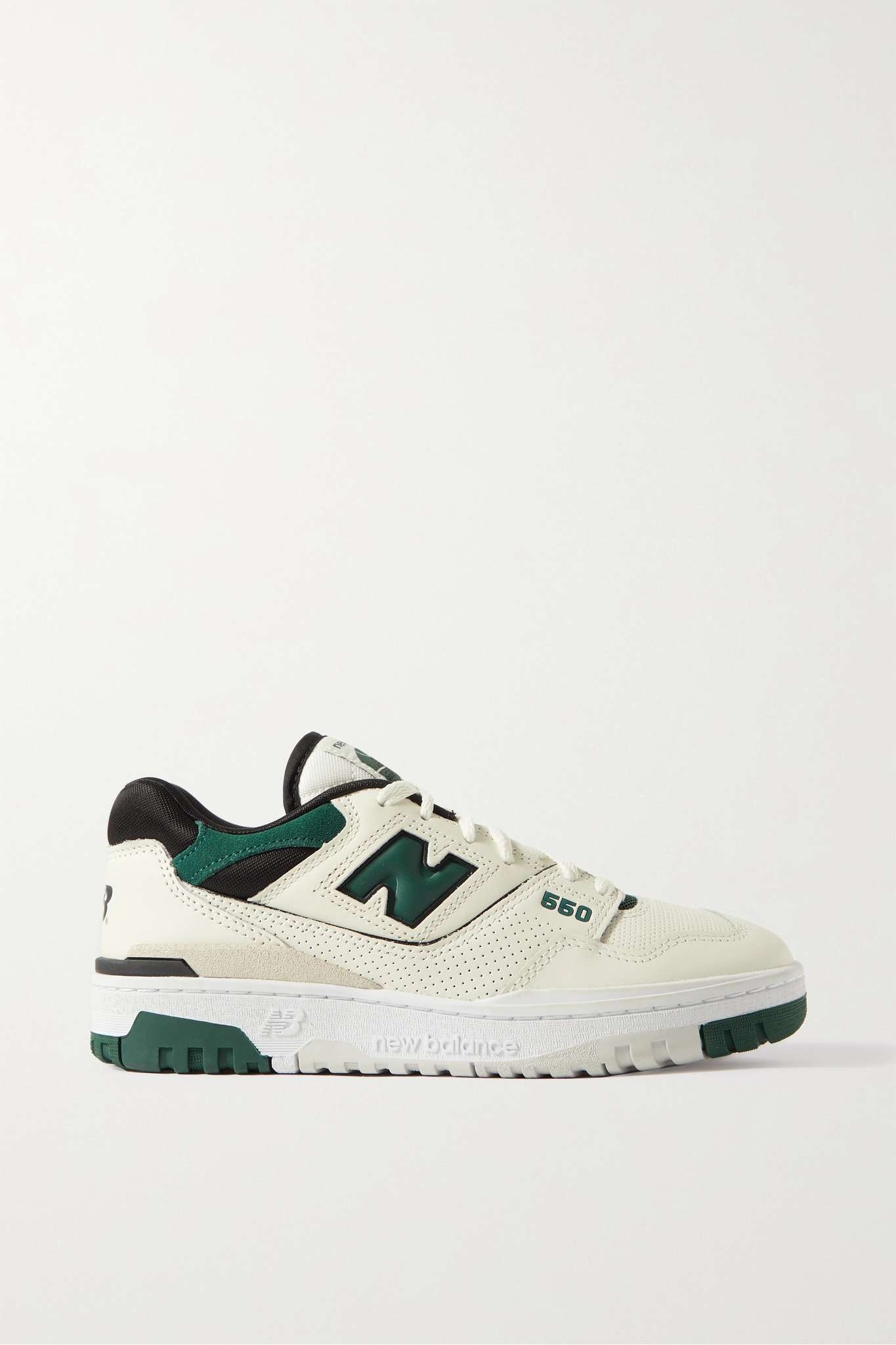 EDITORS'NOTES New Balance's chunky '550' sneakers have a retro look inspired by basketball styles. Crafted from leather, they're perforated for breathability and have comfortable cushioned midsoles. The off-white and black panels are a cool contrast that makes the branding at the side pop. SIZE & FIT These sneakers are men’s US sizing, please refer to below: - Men’s US 3.5 = Women’s US 5/ UK 3/ EU 35.5 - Men’s US 4 = Women’s US 5.5/ UK 3.5/ EU 36 - Men’s US 4.5 = Women’s US 6/ UK 4/ EU 37 - Men’s US 5 = Women’s US 6.5/ UK 4.5/ EU 37.5 - Men’s US 5.5 = Women’s US 7/ UK 5/ EU 38 - Men’s US 6 = Women’s US 7.5/ UK 5.5/ EU 38.5 - Men’s US 6.5 = Women’s US 8/ UK 6/ EU 39.5 - Men’s US 7 = Women’s US 8.5/ UK 6.5/ EU 40 - Men’s US 7.5 = Women’s US 9/ UK 7/ EU 40.5 - Men’s US 8 = Women’s US 9.5/ UK 7.5/ EU 41.5 - Men’s US 8.5 = Women’s US 10/ UK 8/ EU 42 - Men’s US 9 = Women’s US 10.5/ UK 8.5/ EU 42.5 - Men’s US 9.5 = Women’s US 11/ UK 9/ EU 43 - Men’s US 10 = Women’s US 11.5/ UK 9.5/ EU 44 - Men’s US 10.5 = Women’s US 12/ UK 10/ EU 44.5 - Men’s US 11 = Women’s US 12.5/ UK 10.5/ EU 45 - Men’s US 11.5 = Women’s US 13/ UK 11/ EU 45.5 - Men’s US 12 = Women’s US 13.5/ UK 11.5/ EU 46.5 - Fits true to size, take your normal size - Packaging reflects both men’s and women’s sizing DETAILS & CARE - Rubber sole measures approximately 20mm/ 1 inch - Off-white and green leather, black mesh - Lace-up front - New Balance follows its own size guide, therefore the size stated on the box will differ from the one provided in our size chart. To receive your correct fit, please refer to Size & Fit notes