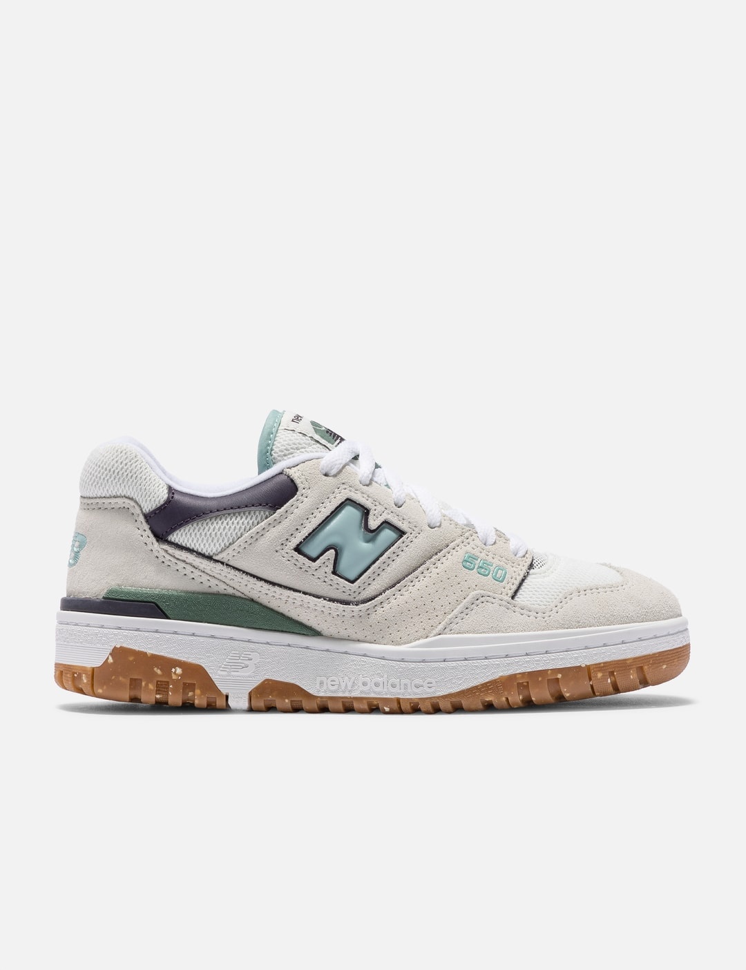 - New Balance - 550 - Suede and mesh upper - Adjustable lace closure - Padded heel - Logo on heel counter - Perforated details on side - Side logo appliqués - Rubber outsole - Color: Sea Salt/Winter Fog/Varsity Gold - Style Code: BBW550NB - Material: Mesh, Suede, Rubber - See more Sneakers and Shoes