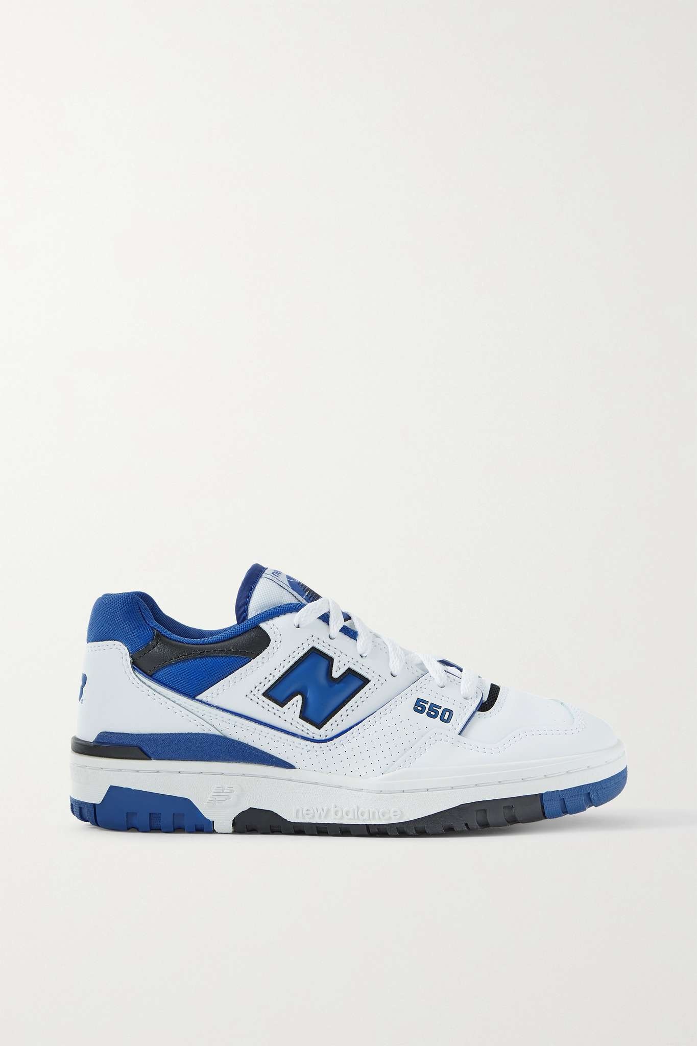 EDITORS'NOTES New Balance's chunky '550' sneakers have a retro look inspired by basketball styles. Made from panels of leather, they're perforated for breathability and have comfortable cushioned midsoles. The rubber trims and bright-blue mesh accents make the branding at the side pop. SIZE & FIT These sneakers are men’s US sizing, please refer to below: - Men’s US 3.5 = Women’s US 5/ UK 3/ EU 35.5 - Men’s US 4 = Women’s US 5.5/ UK 3.5/ EU 36 - Men’s US 4.5 = Women’s US 6/ UK 4/ EU 37 - Men’s US 5 = Women’s US 6.5/ UK 4.5/ EU 37.5 - Men’s US 5.5 = Women’s US 7/ UK 5/ EU 38 - Men’s US 6 = Women’s US 7.5/ UK 5.5/ EU 38.5 - Men’s US 6.5 = Women’s US 8/ UK 6/ EU 39.5 - Men’s US 7 = Women’s US 8.5/ UK 6.5/ EU 40 - Men’s US 7.5 = Women’s US 9/ UK 7/ EU 40.5 - Men’s US 8 = Women’s US 9.5/ UK 7.5/ EU 41.5 - Men’s US 8.5 = Women’s US 10/ UK 8/ EU 42 - Men’s US 9 = Women’s US 10.5/ UK 8.5/ EU 42.5 - Men’s US 9.5 = Women’s US 11/ UK 9/ EU 43 - Men’s US 10 = Women’s US 11.5/ UK 9.5/ EU 44 - Men’s US 10.5 = Women’s US 12/ UK 10/ EU 44.5 - Men’s US 11 = Women’s US 12.5/ UK 10.5/ EU 45 - Men’s US 11.5 = Women’s US 13/ UK 11/ EU 45.5 - Men’s US 12 = Women’s US 13.5/ UK 11.5/ EU 46.5 - Fits true to size, take your normal size - Packaging reflects both men’s and women’s sizing DETAILS & CARE - Rubber sole measures approximately 20mm/ 1 inch - White, bright-blue and black leather, bright-blue and black rubber, bright-blue mesh - Lace-up front - Designer color: White/ Team Royal - New Balance follows its own size guide, therefore the size stated on the box will differ from the one provided in our size chart. To receive your correct fit, please refer to Size & Fit notes
