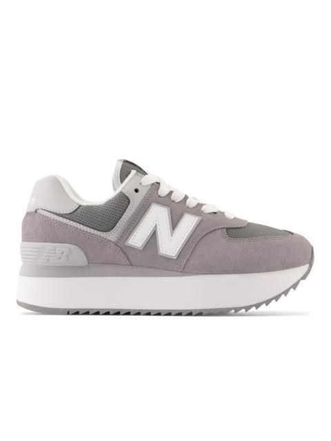 The 574 was built to be a reliable shoe that could do a lot of different things well. The 574’s unique, yet easy to wear set of qualities quickly made it a closet staple across the globe. The 574+ is a striking, contemporary twist on the classic 574 design. The addition of a stacked, two-piece EVA midsole with a scaled down ENCAP piece provides a polished sense of exaggeration. The midsole proportions are complimented by a ripple outsole, inspired by the original Trackster. Pigskin suede overlays offer a premium execution of the familiar 574 upper design. Product Details Features - ENCAP midsole cushioning combines lightweight foam with a durable polyurethane rim to deliver all-day support - Two piece, die cut EVA midsole - Mesh upper with pigskin suede overlays - 37mm midsole height; due to variances created during the development and manufacturing processes, all references to midsole height are approximate Size & Fit - 282 grams (9.9 oz) - Size & Fit Guide Style #: WL574ZSD