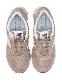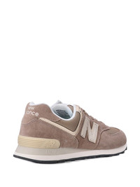 574 low-top sneakers One of New Balance’s most iconic and versatile styles, the 574, appears here in an earthy beige colourway. The panelled design features classic details such as the numbered logo patch on the tongue while the ‘N’ logo patch to the side acts as an unmissable branded finish. Highlights - Taupe brown/light beige - Leather - Round toe - Micro-mesh panels - Front lace-up fastening - Logo patch at the tongue - Branded insole - Embroidered logo to the rear - Logo patch to the side Imported Composition Outer: Leather 100%, Other Materials 100% Lining: Fabric 100% Sole: Rubber 100% Washing instructions Read Manufacturer Guidelines