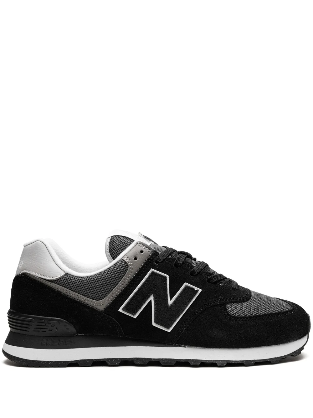 574 low-top sneakers A signature style for New Balance, the 574 sneakers are presented for SS23 in a black colour. This low-top model is crafted from a mix of suede and mesh panels and is highlighted with a recognisable 'N' logo at the sides. Highlights - Black - Suede - Mesh panelling - Logo patch to the side - Contrasting panel detail - Round toe - Front lace-up fastening - Logo patch at the tongue - Branded insole - Rubber sole - These styles are supplied by a premium sneaker marketplace. stocking only the most sought-after footwear, they source and curate some of the most hard to find sneakers from around the world. Imported Composition Outer: Suede 100%, Mesh 100% Sole: Rubber 100% Lining: Fabric 100%