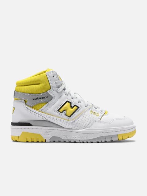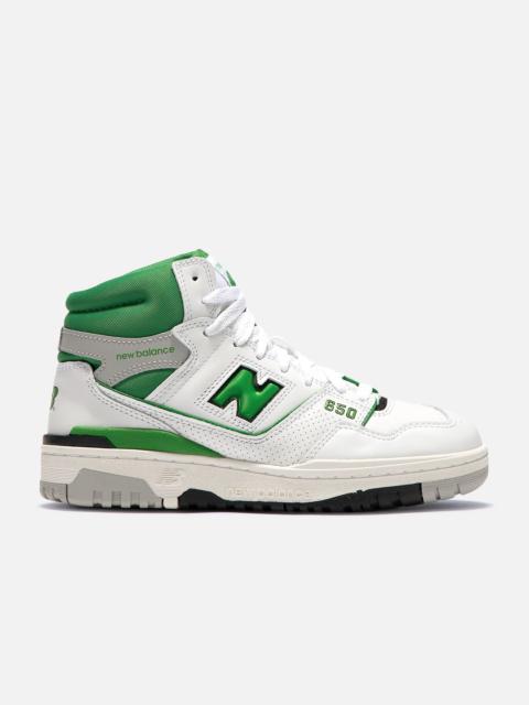 - New Balance - 650 - Leather upper - Lace-up closure - Hi-top - Padded and stitch collar - Perforated overlays - Branded heel patch - Rubber outsole - Color: White/Cloud Gray - Style Code: BB650RWC - Material: Leather, Rubber - See more Sneakers and Shoes