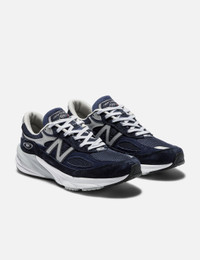 - New Balance - Made in USA 990v6 - Pig suede and mesh upper - Lace-up closure - FuelCell foam and ENCAP midsole - Reflective detail - TPU pull tab - Rubber outsole - Color: Navy Blue/White - Style Code: M990NV6 - Material: Suede, Leather - See more Sneakers and Shoes