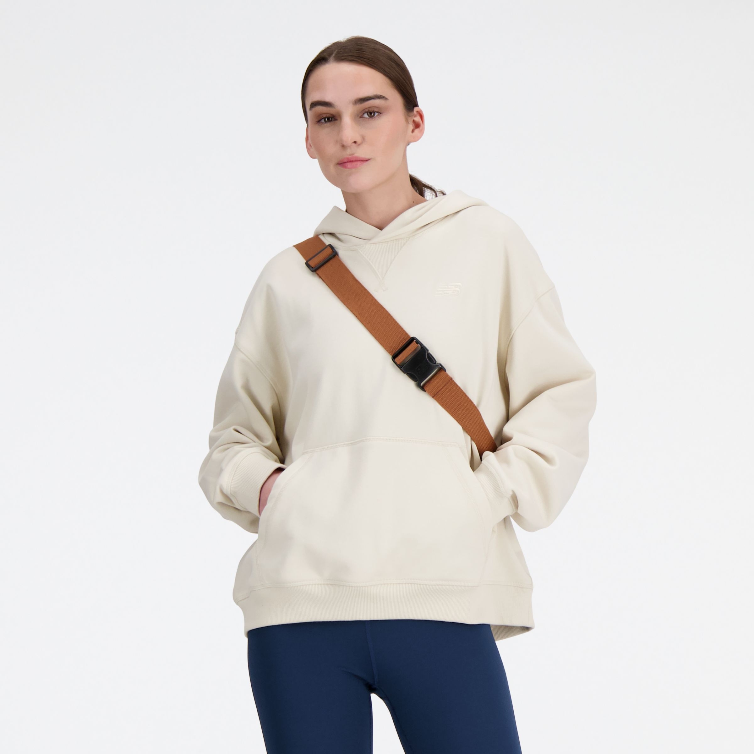 An elevated take on a timeless classic, this oversized hoodie features soft, French terry construction and an embroidered New Balance logo. Product Details Features - Hooded - Carrot rib detail at neckline - Pullover silhouette - Long sleeves - Tonal embroidered New Balance logo - Imported - Oversized, exaggerated fit, designed with extra room and spacious feel - Size & Fit Guide Material - Soft French terry material - 100% cotton Style #: WT41537LIN