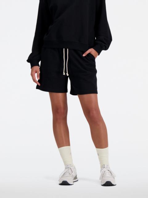 These comfortable French terry shorts look great in the gym and beyond. Product Details Features - Embroidered Flying NB logo - Imported - High rise for added coverage and comfort - Relaxed, roomy fit, designed to fit loosely around the body - 5" inseam - Size & Fit Guide Material - Soft French terry material - 100% cotton Style #: WS41508LIN