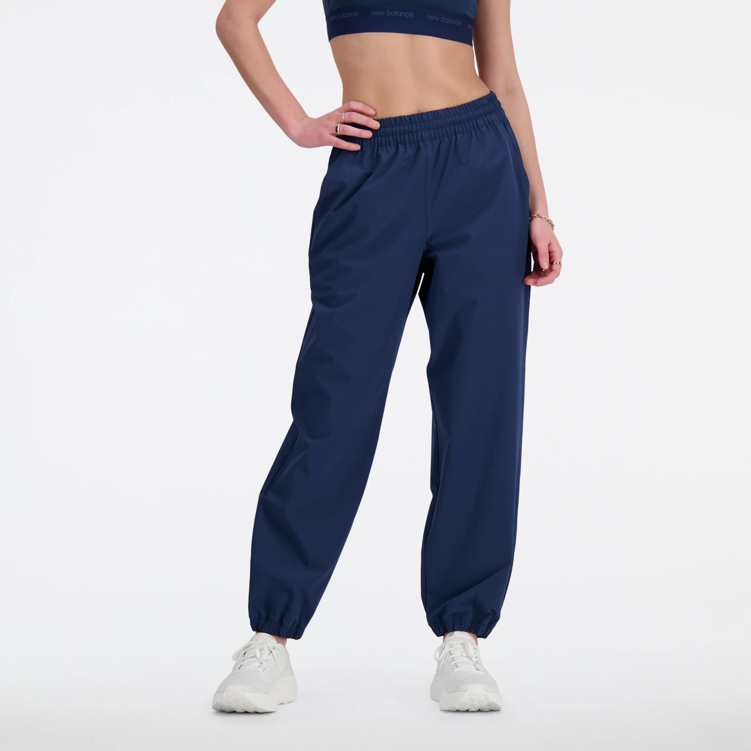 Stretch-woven joggers designed to help you stay comfortable. Product Details Features - Stylish NB flag label - Slash hand pockets - Imported - High rise for added coverage and comfort - Relaxed, roomy fit, designed to fit loosely around the body - Size & Fit Guide Material - Lightweight material with stretch - 86% recycled polyester, 14% spandex Style #: WP41572NNY
