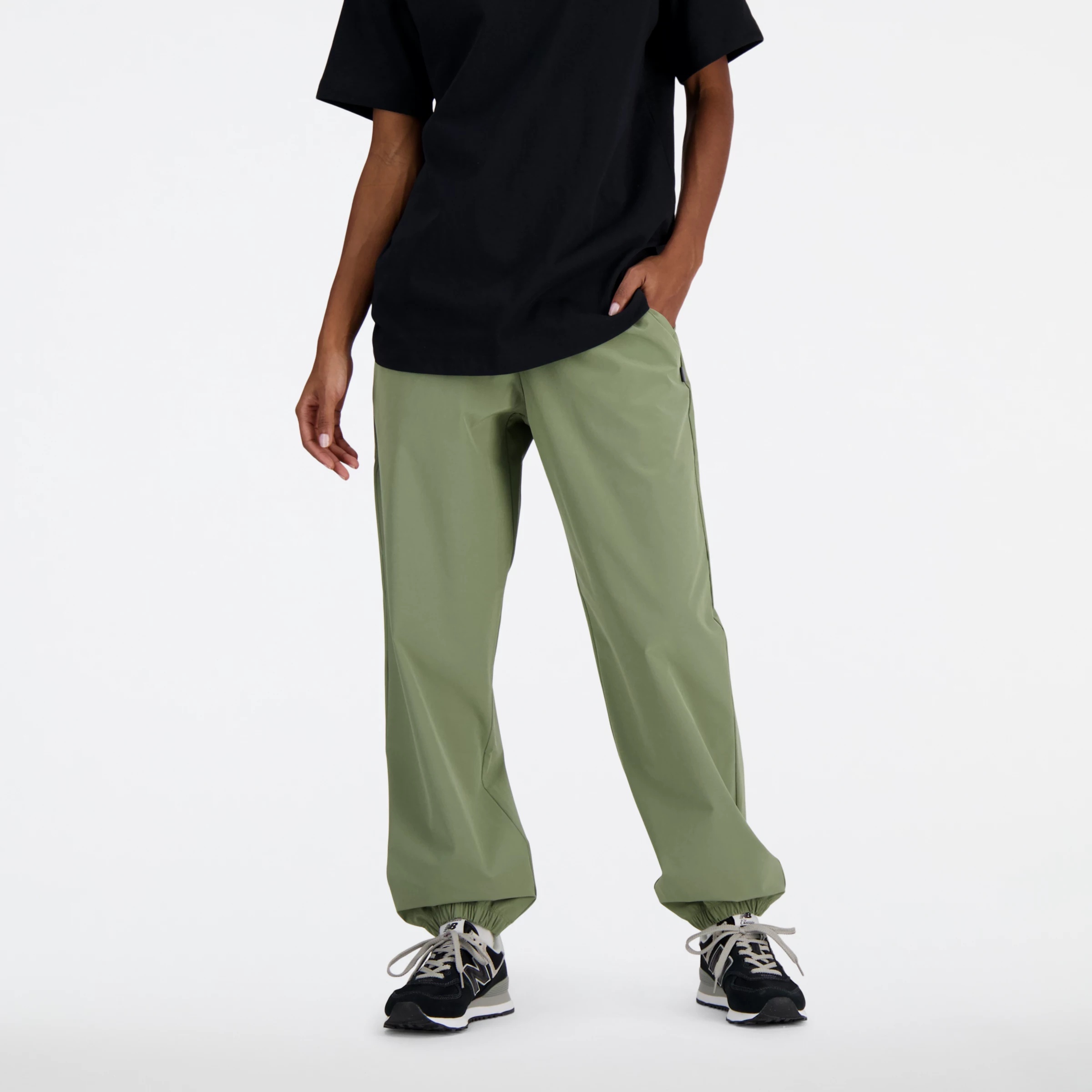 Stretch-woven joggers designed to help you stay comfortable. Product Details Features - Stylish NB flag label - Slash hand pockets - Imported - High rise for added coverage and comfort - Relaxed, roomy fit, designed to fit loosely around the body - Size & Fit Guide Material - Lightweight material with stretch - 86% recycled polyester, 14% spandex Style #: WP41572DEK