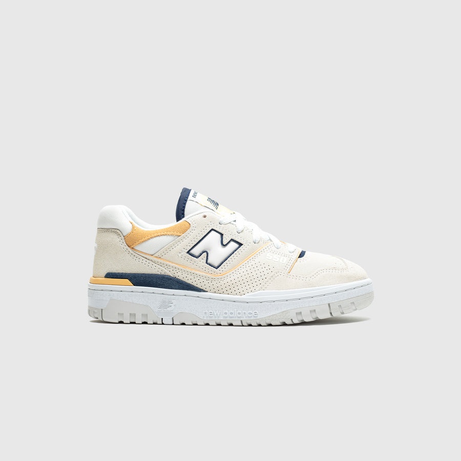 - BBW550AB - Sea Salt/Nb Navy/Raw Sugar - Originally released in 1989, the surprise-hit New Balance 550 has made a return as a low-top basketball-turned-lifestyle sneaker - Premium Suede and Leather upper - Perforations throughout to improve breathability - New Balance branding featured on the tongue, side, heel, collar, sockliner, and outsole - Lace closure - Rubber outsole